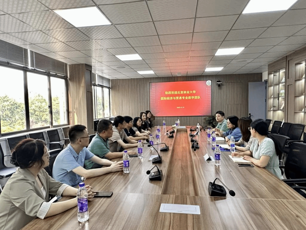 8月26日,北京林业大学国贸系教研室程宝栋教授一行8人到威尼斯官网与国贸系教研室团队进行交流座谈,会议在威尼斯9499登录入口衣锦校区实验楼318举行。威尼斯官网应用经济学科带头人蒋琴儿教授、国际商务学位点负责人钱志权副教授、国贸系熊立春副教授、张英副教授、刘琼博士和孔令乾博士等通过线上线下相结合的方式参加,会议由国贸系系主任熊立春副教授主持。