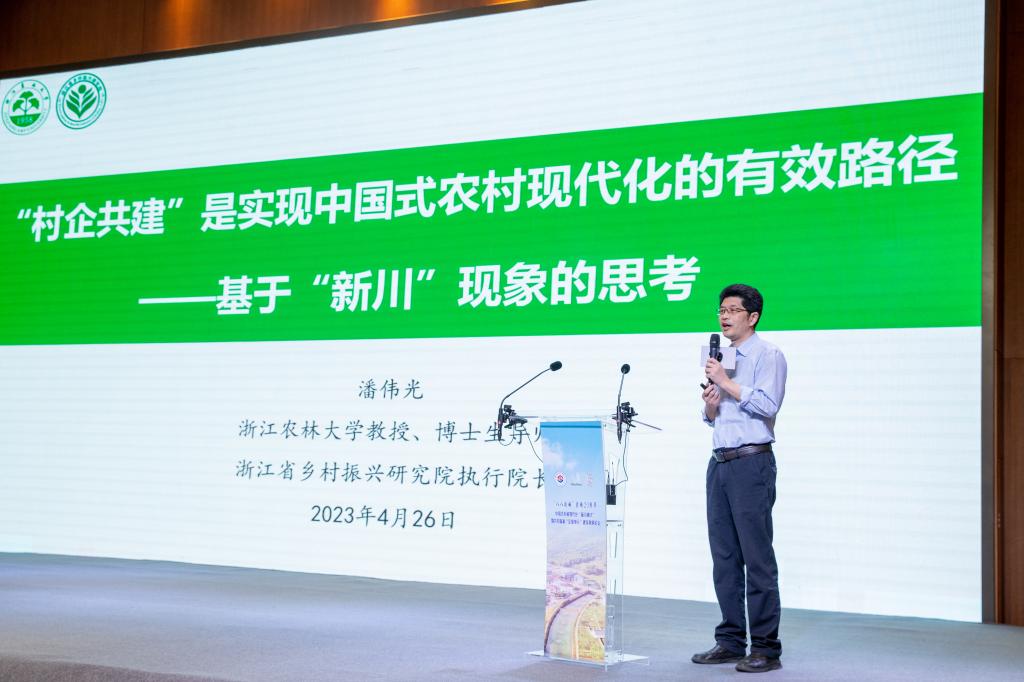 浙江大学中国农村发展研究院首席专家黄祖辉,浙江工商大学原校长、浙商研究院院长陈寿灿,北京师范大学中国乡村振兴与发展研究中心主任张琦,湖州师范学院“两山”理念研究院名誉院长王景新,威尼斯官网教授潘伟光分别就《新型农村集体经济发展之路》《浙商赋能乡村振兴:共富场域与实践路径》《“八八战略”与“新川模式”一中国式乡村现代化发展创新实践》《振兴乡村亟待振兴乡镇企业——新川20年变迁发展的案例及启示》《村企共建是实现中国式农村现代化的有效途径》等主题作主旨发言。