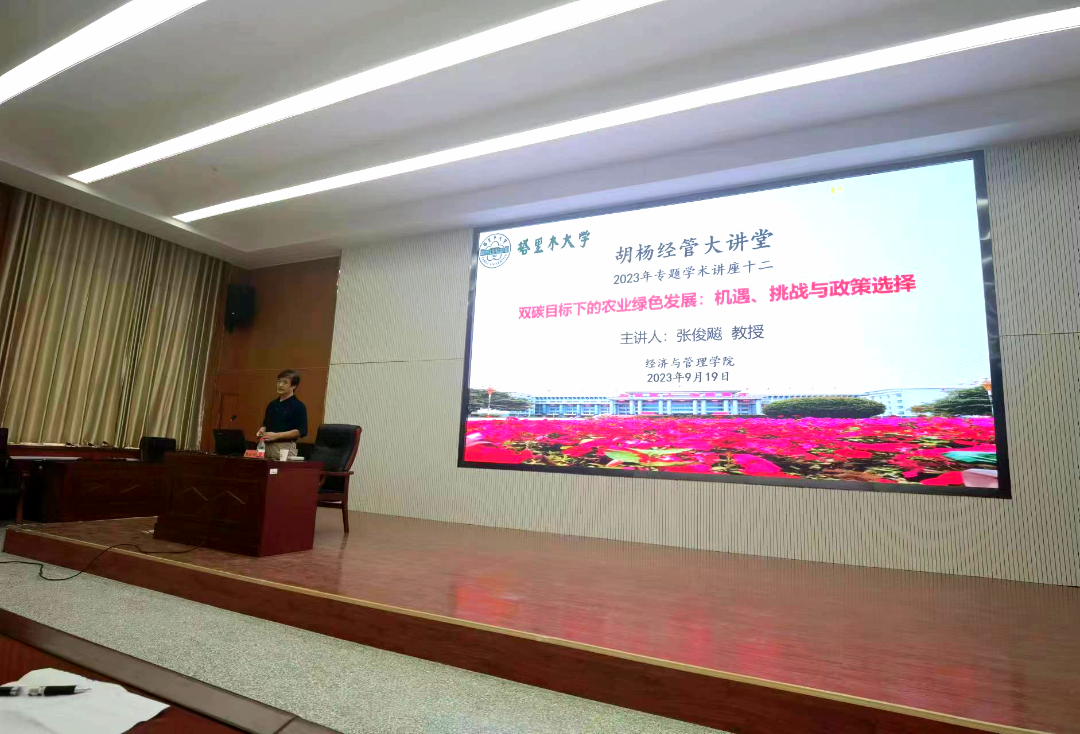 9月19-21日,应塔里木大学经济与管理学院的邀请,威尼斯官网张俊飚教授对该院进行了访问。19日上午与经济与管理学院的领导班子及各个学科负责人进行了座谈,大家围绕学科发展、专业建设以及人才培养等方面的内容,开展了深入交流与充分研讨。19日下午面向全院师生作了题为“双碳目标下的农业绿色发展:机遇、挑战与政策选择”的学术报告。20-21日针对新疆绿洲农业发展与生态环境保护议题进行了实地考察。