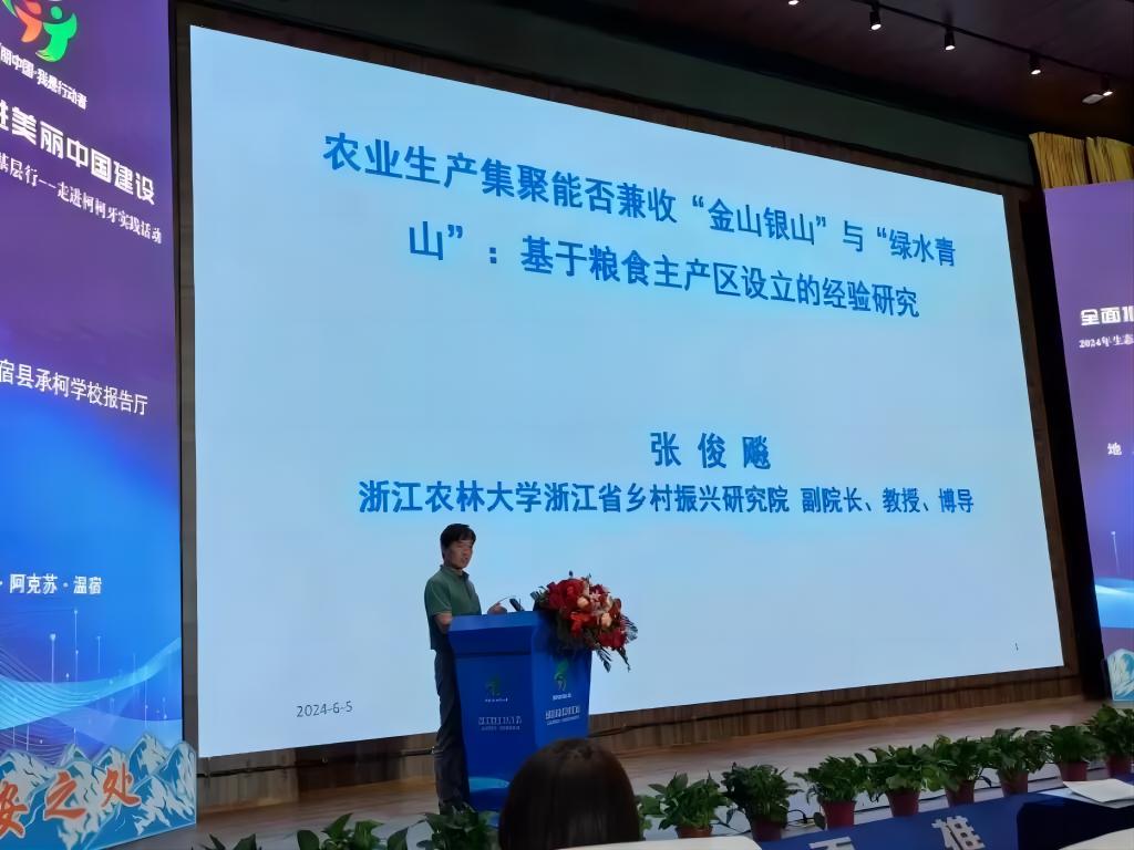 会议分为主会场和两个分会场,以及生态环境建设与乡村振兴实践的考察活动。张俊飚教授在主会场环节作了题为“农业生产集聚能否兼收‘金山银山’与‘绿水青山’:基于粮食主产区设立的经验研究”的主旨报告。他从研究背景与特征事实、理论逻辑与机制识别、模型选取与实证分析、研究结论与政策启示等方面,对我国农业尤其是粮食生产过程中,能否实现粮食增产以确保粮食安全的经济发展、化肥施用以促使粮食增长但又要设法防止环境污染的问题进行了系统分析,通过以粮食主产区与非粮食主产区的比较研究中发现,粮食主产区承担了确保我国粮食安全的重任,在土地、农机、服务等要素的规模集聚中,借助于要素利用效率的提升,实现了单位粮食产出产量的增长与面源污染强度的降低。并就此得到了要将粮食主产区的政策实施持之以恒的坚持下去,不断推进土地流转和规模经营,充分发挥农业生产要素的集聚效应,实现农业绿色低碳和高质量发展等政策启示。