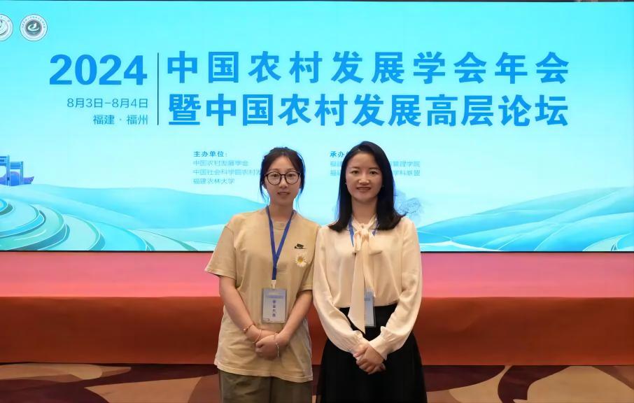2024年8月2日至4日,徐彩瑶副教授应邀带领团队硕士研究生钱一莹参加中国农村发展学会年会暨中国农村发展高层论坛,论坛由中国农村发展学会、中国社会科学院农村发展研究所、福建农林大学共同主办,福建农林大学经济与管理学院、福建省高校绿色经济学科联盟共同承办。