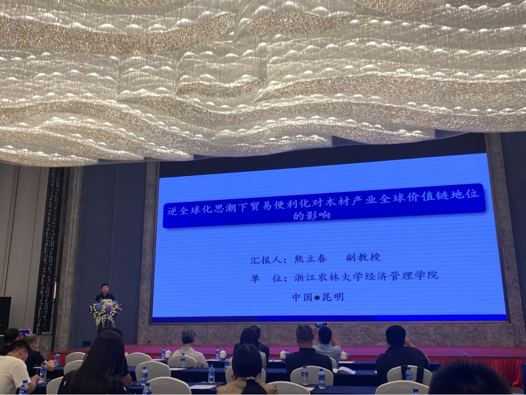 熊立春副教授撰写的论文“逆全球化思潮背景下贸易便利化对木材产业全球价值链地位的影响”被评选为“优秀论文”并在年会现场的优秀论文会场作了学术报告。