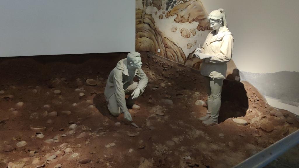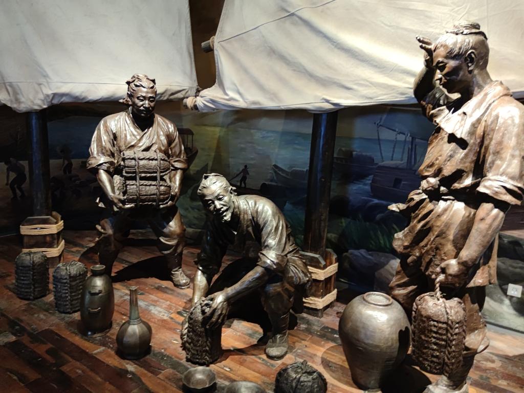 随后,实践团沿着铺满石子的小路进入了一个新的陈列厅,展现在眼前的是用陶瓷制作的古代劳动人民的制瓷场景,其中包括夯砸、烧制、釉色……艺术品并非一朝一夕可以制成,是经过几代人默默无闻的耕耘,孜孜不倦地追求的成果。正是因为有了这种孜孜不倦、严谨细微的工匠精神,才有了让青瓷文化流传千古。