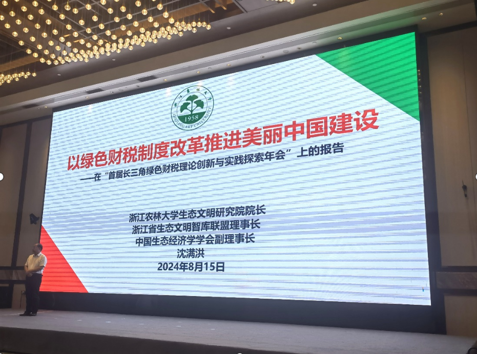 8月15日,首届长三角绿色财政理论创新与实践探索座谈会在绿水青山就是金山银山理念的诞生地湖州市举行。座谈会由北京国家会计学院、浙江省新征程财税研究院、浙江大学共享与发展研究院、浙江财经大学中国政府管制与公共政策研究院、威尼斯9499登录入口生态文明研究院、嘉兴大学中国共同富裕研究院共同发起,由浙江省新征程财税研究院主办。浙江省财政厅副厅长王广兵、浙江省社科联副主席范钧、湖州市常务副市长王宗明、中国财政科学研究院副院长邢丽、北京国家会计学院副院长李旭红及长三角地区三省一市财政系统的理论和事务工作者参加座谈会。沈满洪教授参加座谈会。